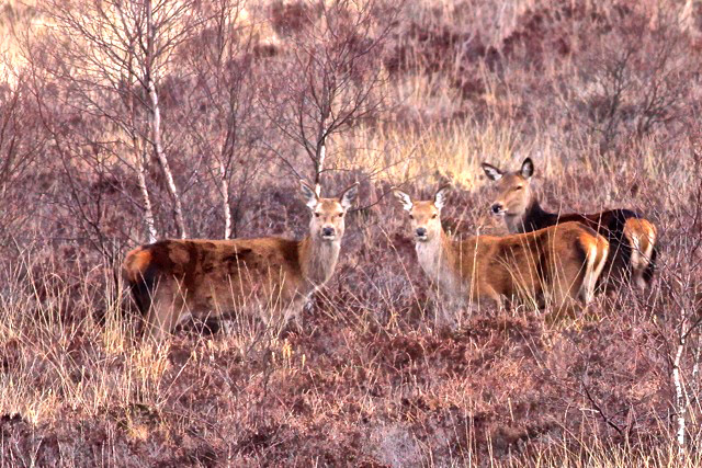 Our morning stroll over the moorland was, for me, uncharted territory and quite a contrast to the area of Brimham Rocks where I normally walk. We were soon treated to fine views of deer: four Reds, two Roe and a Sika buck with a magnificent pair of antlers. It was whilst we were examining these creatures that we became aware of at least two Stonechats in the foreground. Their colours stood out beautifully against the surrounding pale ochre of the dead grasses and echoed the russets of the distant deer.