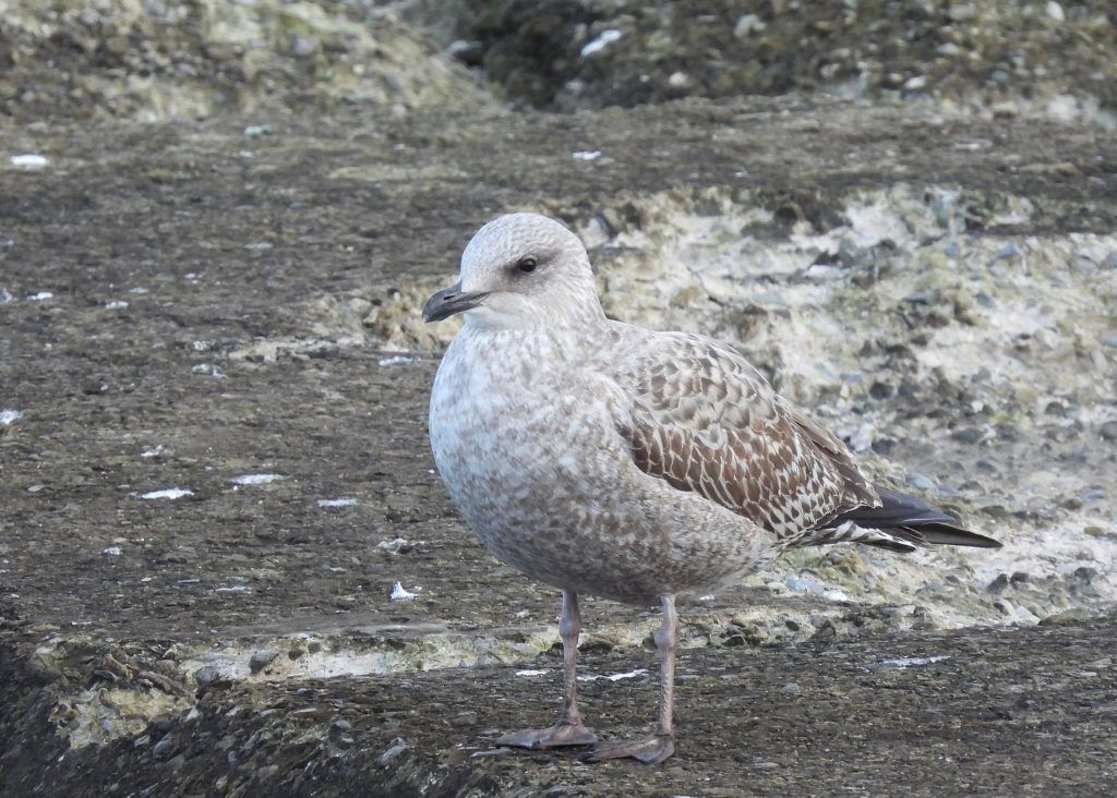 We returned past the Headland and along to the Fish Quay. A Rock Pipit was spotted in one of the front gardens. Great Black-backed and Herring Gulls, Cormorants and a small number of Eider Ducks were on the rocks between the two piers. Six Sanderling, two Purple Sandpipers and more Turnstones were on the shoreline.