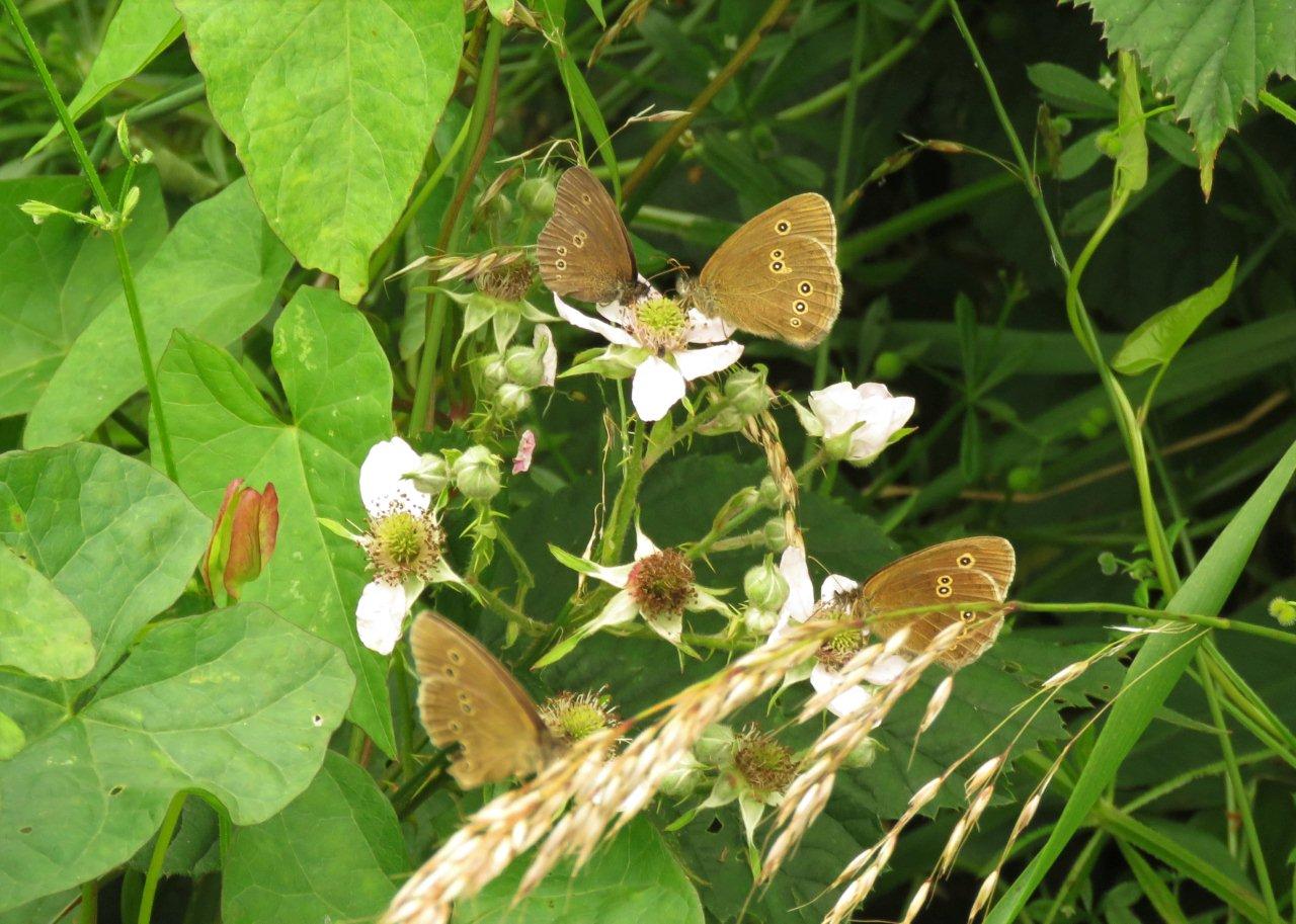 The acidic peat of the moor has been interspersed with limestone from human activities and as we entered the site we found typical flora of calcareous grassland such as Yellow-wort, Centaury, Hop Trefoil, Hairy Tare, Restharrow and plentiful Common Spotted orchids and a few Pyramidal – the dry margin of the moor was a veritable garden of colourful flowers. Ringlet butterflies abounded and Small and Large Skippers were seen.
