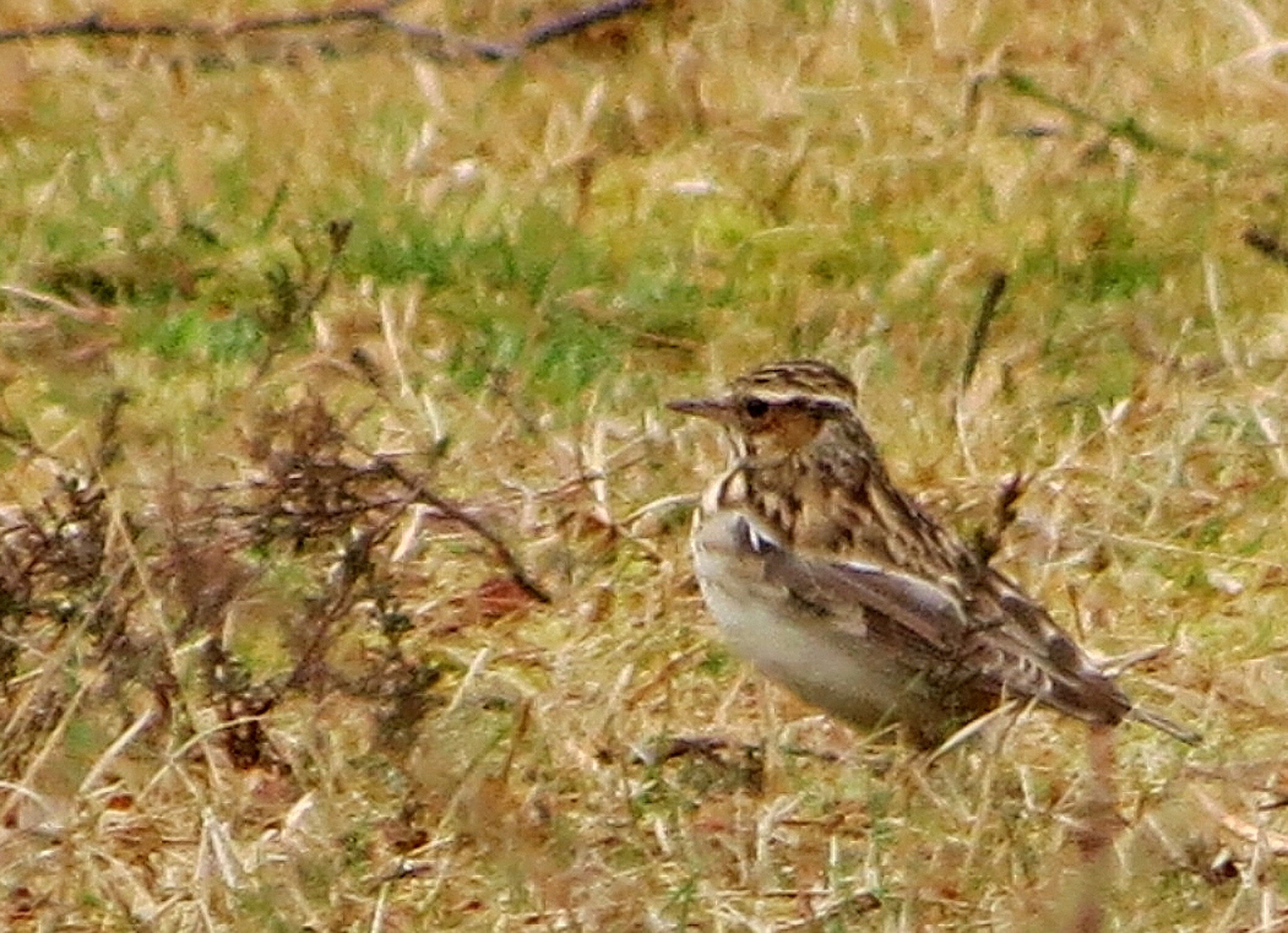Or at least the Woodlarks thought so! As we peered through the drizzle amidst the continuous yaffling of some energetic Green Woodpeckers we heard the tell-tale sonorous, rippling sound of Woodlark. At first they were not visible, but our patience was rewarded when, after searching further afield, we were treated to a close sighting of a singing Woodlark on a nearby tree stump. Mike moved quickly to mount his camera onto his scope and managed to track the bird along the ground. Then the bird flew off so we made our way back to the cars with mutterings of ‘Lifer’ and ‘First Yorkshire Personal Sighting’ and ‘pure quality’