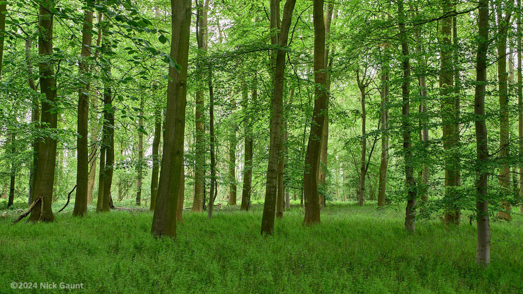 The walk then took us over fields and we saw Dryad’s Saddle fungus on an ancient Ash Tree with Pignut and Yorkshire Fog all around. As we entered the woodland area, we then encountered a different flora including Leopardsbane, various Ferns, Enchanter’s Nightshade, Elm, Ash, Pedunculate Oak and Beech trees. Sadly we missed the Bluebells flowering at their best although this did not seem to curb our enthusiasm.